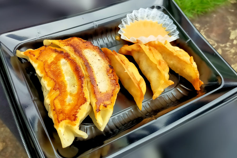 大粒の焼き餃子と小粒の揚げ餃子のセットです。